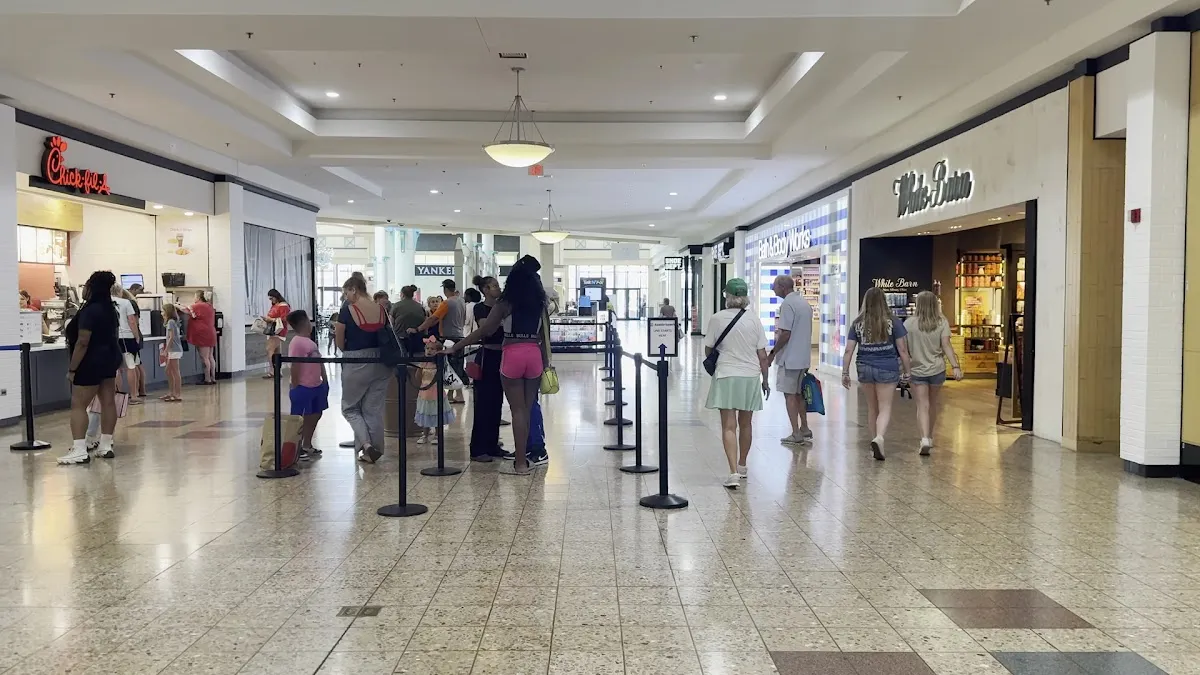 Traditional, single-level shopping complex with a food court & an old-fashioned carousel ride.