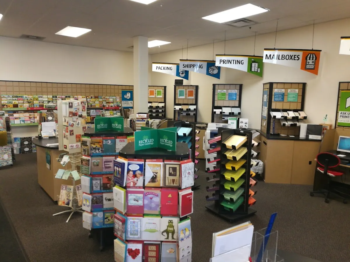 Store offering shipping, packaging, printing & other services, plus office supplies.